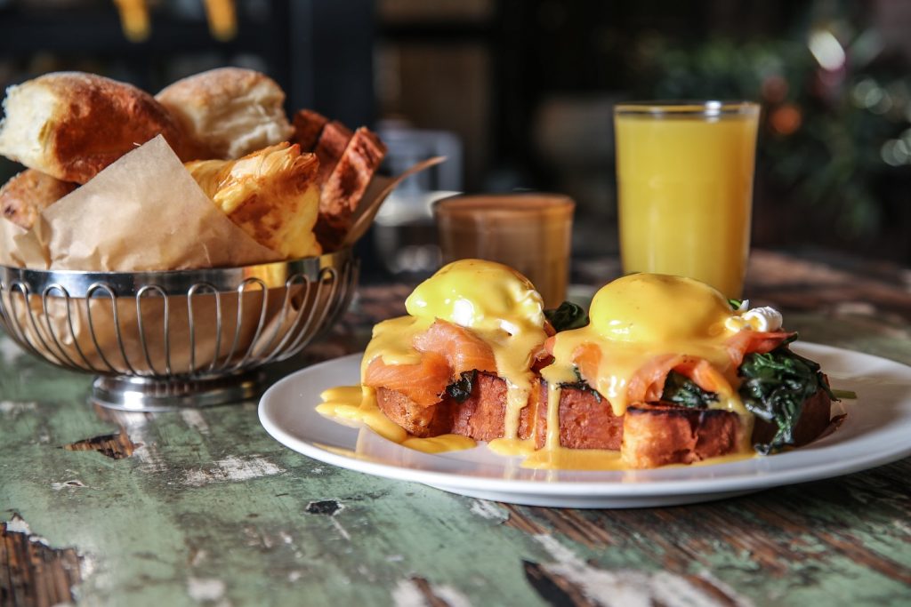 Must-try dishes: Market breakfast with scrambled eggs, breads and Meatbal dips, beef Hamburg with onion jam and lamb bacon, and tomato salad with burrata.