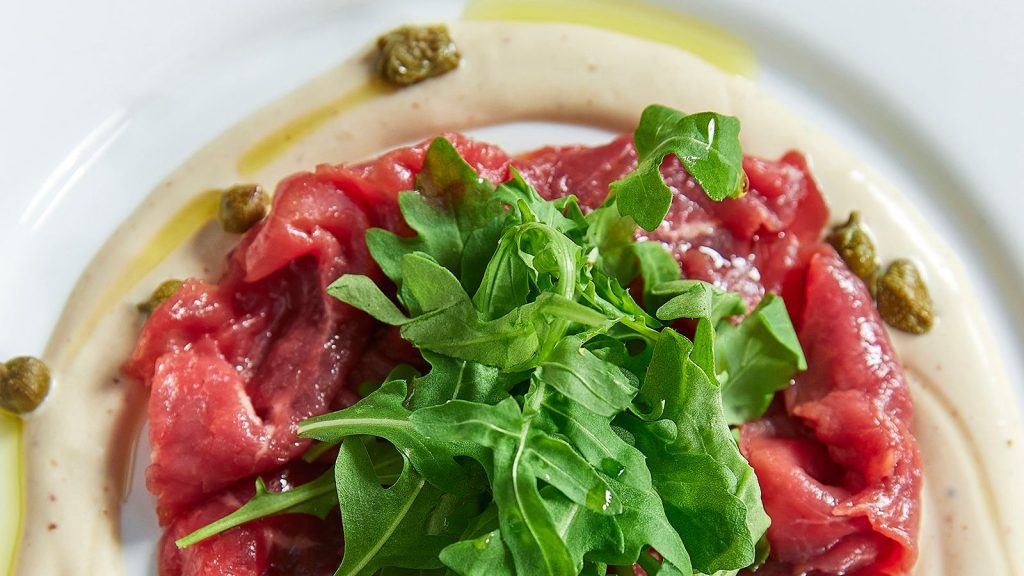 - תוספת ירוקה: בקערה נפרדת, מערבבים את הארוגולה עם מעט שמן זית ומלח, ומסדרים אותה בעדינות מעל הבשר.