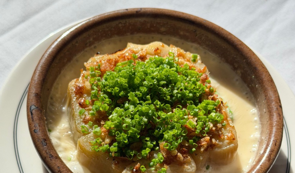 מנה מתוחכמת המבוססת על בישול ארוך וסבלני של כרישה במי ריקוטה, שנחתמת ברוטב קומטה עשיר ומלטף המעניק רובד של אוממי בכל מזלג. השילוב בין רכות הכרישה לקרינצ'יות של השאלוט יוצר חוויה קולינרית אירופאית קלאסית, המוגשת בסטייל של בר יין תל אביבי.